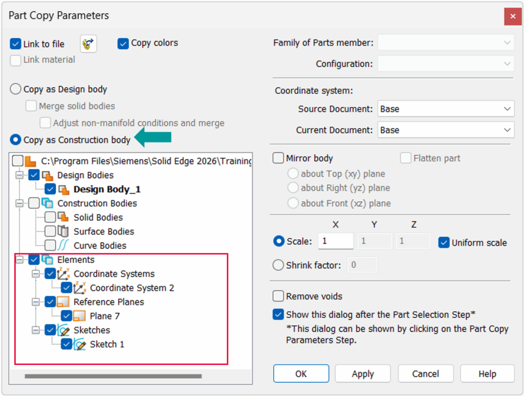 Giờ đây, bạn có thể bao gồm cả hệ tọa độ, bản vẽ phác (sketches) và mặt phẳng tham chiếu (reference planes) khi tạo bản sao chi tiết, đảm bảo tính căn chỉnh, chính xác và nhất quán trong toàn bộ thiết kế.