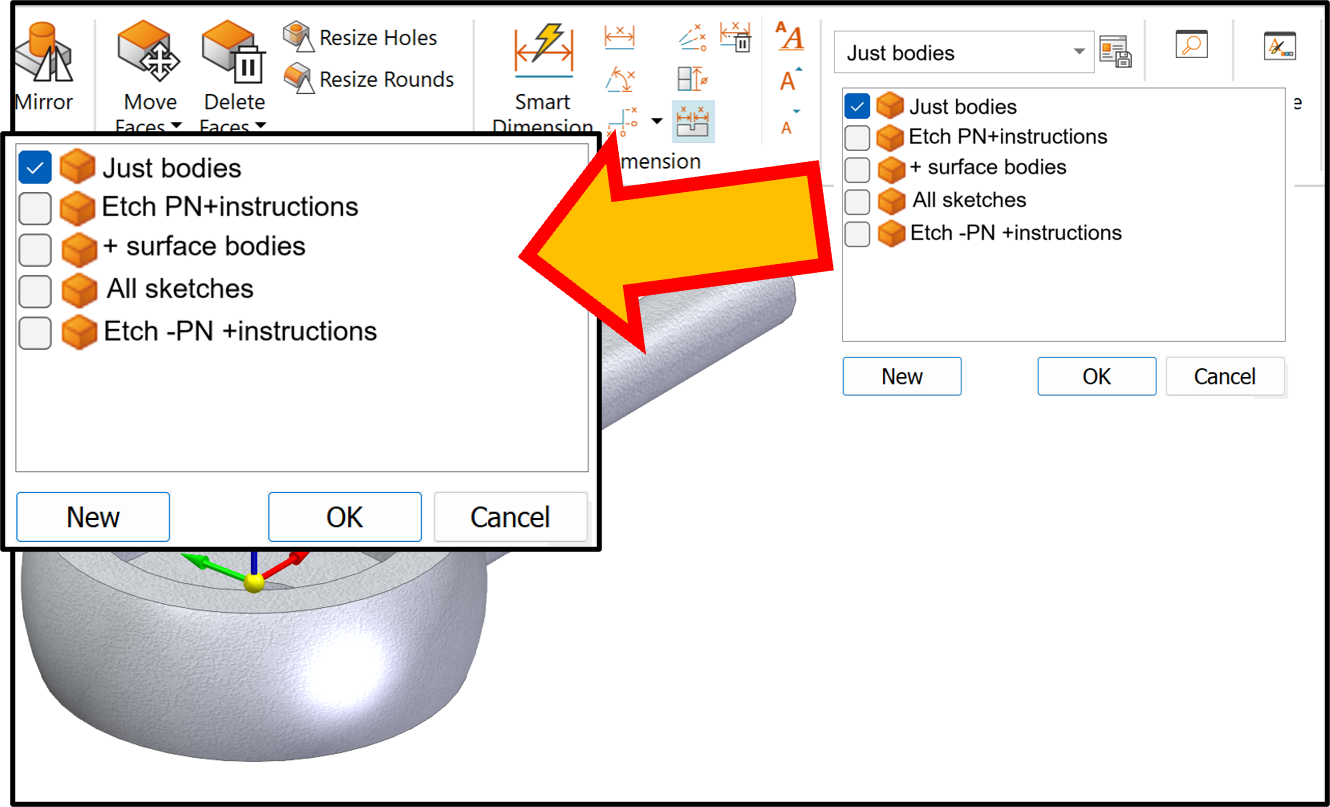Với tính năng Part Display Configurations mới, bạn có thể bật/tắt hiển thị các thành phần cụ thể để tạo nhiều phiên bản hiển thị khác nhau của cùng một chi tiết hoặc cụm lắp ráp, tất cả đều trong một tài liệu duy nhất.